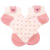 · En blanco crudo con cerdo en relieve en la parte superior y topos en el pie en rosa.