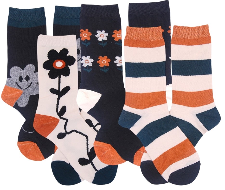 · Diseños Coloridos: Calcetines con patrones florales y colores vivos para un estilo divertido.