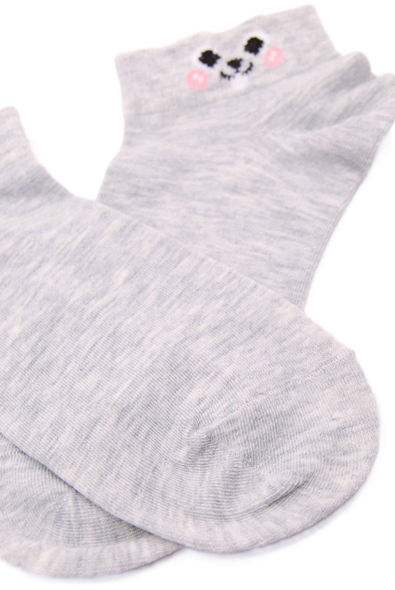 · En color gris liso con carita y orejitas en la parte superior.